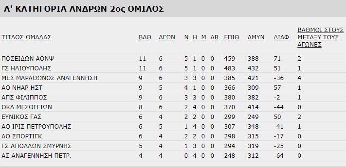 Ηλιούπολη (Καρακώστας, Μαγουλάς): Σπανός 12 (4), Ζανιδάκης 17 (2), Βάβουλας, Παναγόπουλος 10 (2), Πρεμέτης 7, Κώστας 2, Σπυριδόπουλος 7, Γλένης-Κονιστής, Καραβασάνης 5 (1), Κωσταρέλλος, Γιανναλέτσος 22, Σούλης.