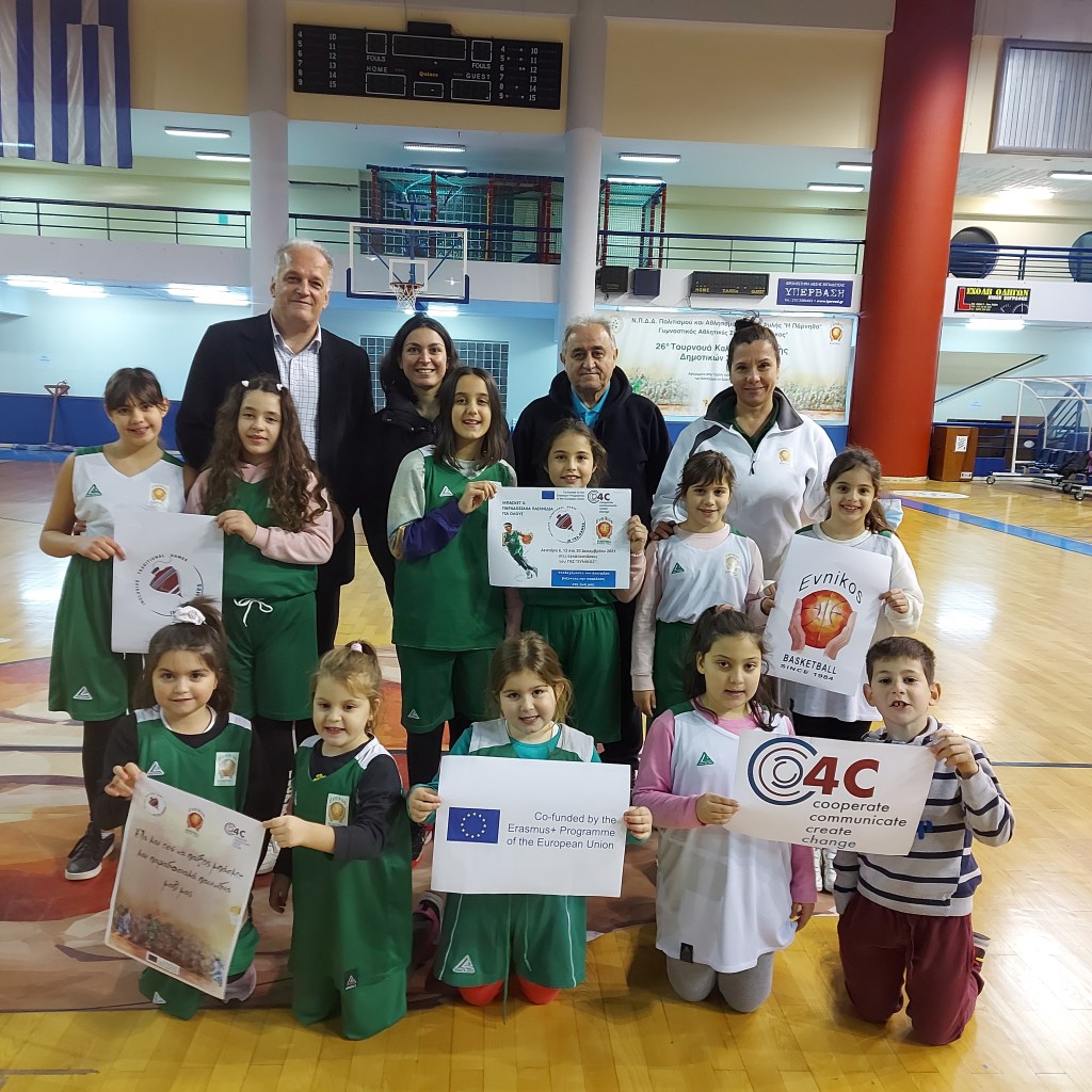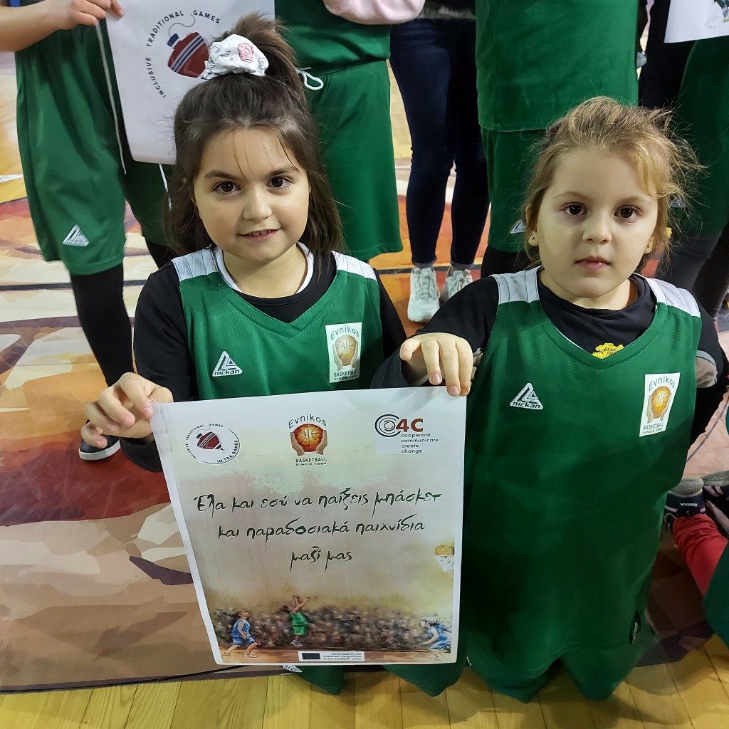 Η ανταπόκριση στο κάλεσμα του συλλόγου μας και της 4C Cooperate Communicate Create Change, στη δράση «έλα να παίξεις μπάσκετ και παραδοσιακά παιχνίδια» ήταν πολύ μεγάλη. Περισσότερα από 50 αγόρια και κορίτσια, ηλικίας 4-8 ετών, συμμετείχαν με όλη τους τη ζωντάνια, τη διάθεση και τη χαρά και έπαιξαν με την ψυχή τους. Τα παιχνίδια με τα οποία τα παιδιά μας ήλθαν σε πρώτη επαφή, ήταν οι σκυταλοδρομίες με τη σύγχρονη καθώς και μια πιο παλιά μορφή τους, το αγαλματάκια αμίλητα-ακίνητα και το παιχνίδι με το μαντήλι.