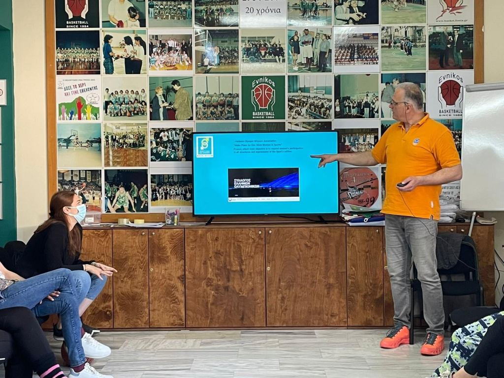 Ο Βασίλης Ντάκουρης, Ειδικός Γραμματέας της Ελληνικής Ομοσπονδίας Καλαθοσφαίρισης (Ε.Ο.Κ.), πρώην διεθνής καλαθοσφαιριστής και προπονητής, καθώς και εθελοντής συντονιστής για τα ευρωπαϊκά προγράμματα του Εύνικος Γ.Α.Σ. παρουσίασε τις πρωτοβουλίες που έχει λάβει ο ελληνικός αθλητισμός στην προσπάθεια εξάλειψης των φαινομένων σεξισμού και έμφυλων διακρίσεων.