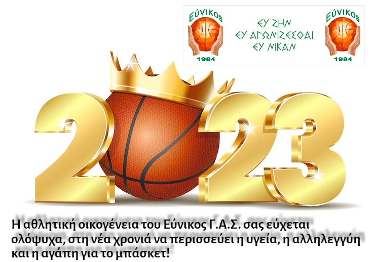 Το Δ.Σ., οι προπονητές και οι προπονήτριες , οι αθλητές-αθλήτριες του ΕΥΝΙΚΟΣ Γ.Α.Σ. , σας εύχονται το 2023 να υλοποιηθούν οι επιθυμίες σας , να έχετε ΥΓΕΙΑ , αγάπη , ευτυχία και επιτυχίες σε ότι κάνετε!