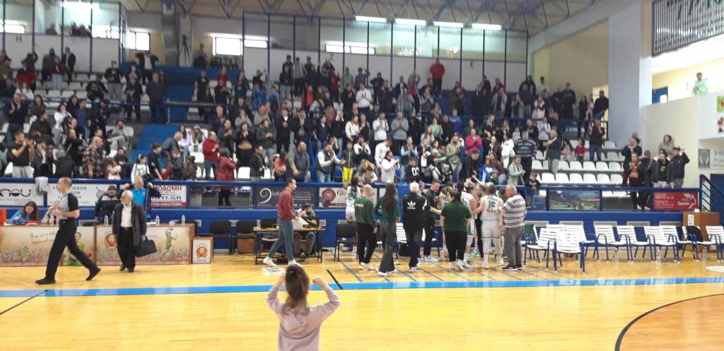 Η τελευταία κόρνα της γραμματείας βρήκε τις παίκτριες ένα κουβάρι με το τεχνικό επιτελείο και ανθρώπους της διοίκησης να πανηγυρίζουν μπροστά στον κόσμο που σιγόνταρε και χάρηκε με την ψυχή του για τα κορίτσια του!