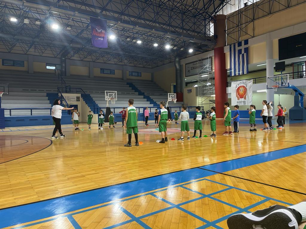 Στο τέλος της συνάντησης τα παιδιά του τμήματος FUN BASKET ηλικίας 5-9 χρόνων με την προπονήτριά τους Παππού Κατερίνα και τον προπονητή τους Κατσιώλη Νίκο, έκλεψαν την παράσταση και χειροκροτήθηκαν για τα παραδοσιακά παιχνίδια που έπαιξαν και απόλαυσαν.