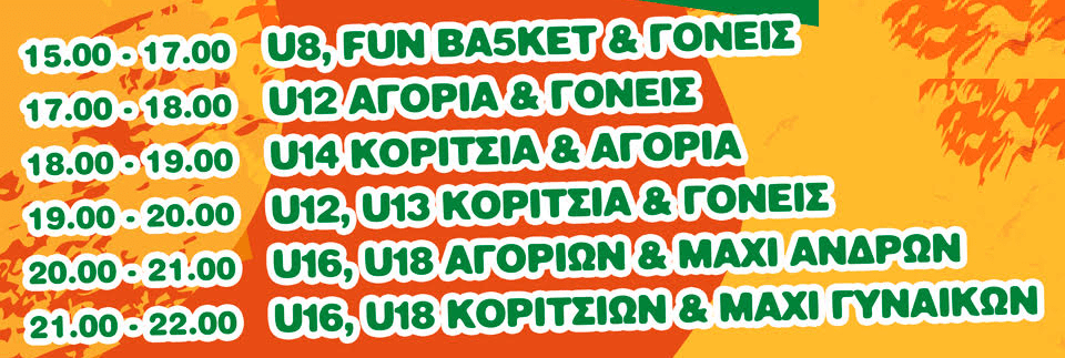 Από τις 15.00 έως στις 22.00, σύμφωνα με το παρακάτω πρόγραμμα, αγόρια και κορίτσια, γυναίκες και άνδρες όλων των ηλικιών την Πέμπτη 21 Δεκεμβρίου 2023 στο Στάδιο Εύνικος, διασκεδάζουμε παίζοντας 3Χ3, με πολύ μουσική και πολλές εκπλήξεις !!!