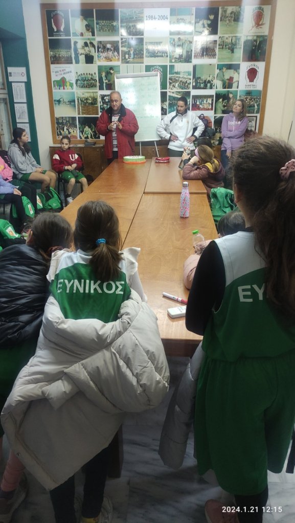 Κατάμεστη η αίθουσα εκδηλώσεων του Σταδίου Εύνικος στην ετήσια εκδήλωση κοπής πρωτοχρονιάτικης πίτας των τμημάτων κοριτσιών U12, U13 και U14.