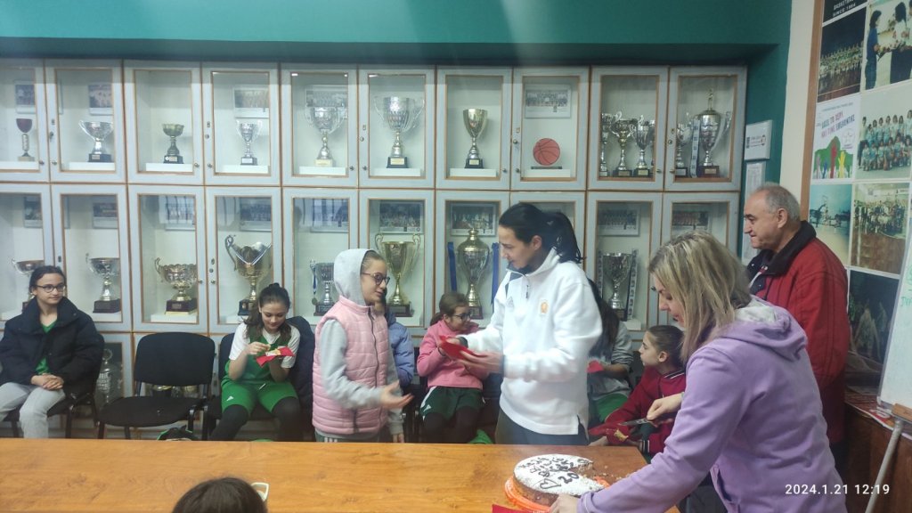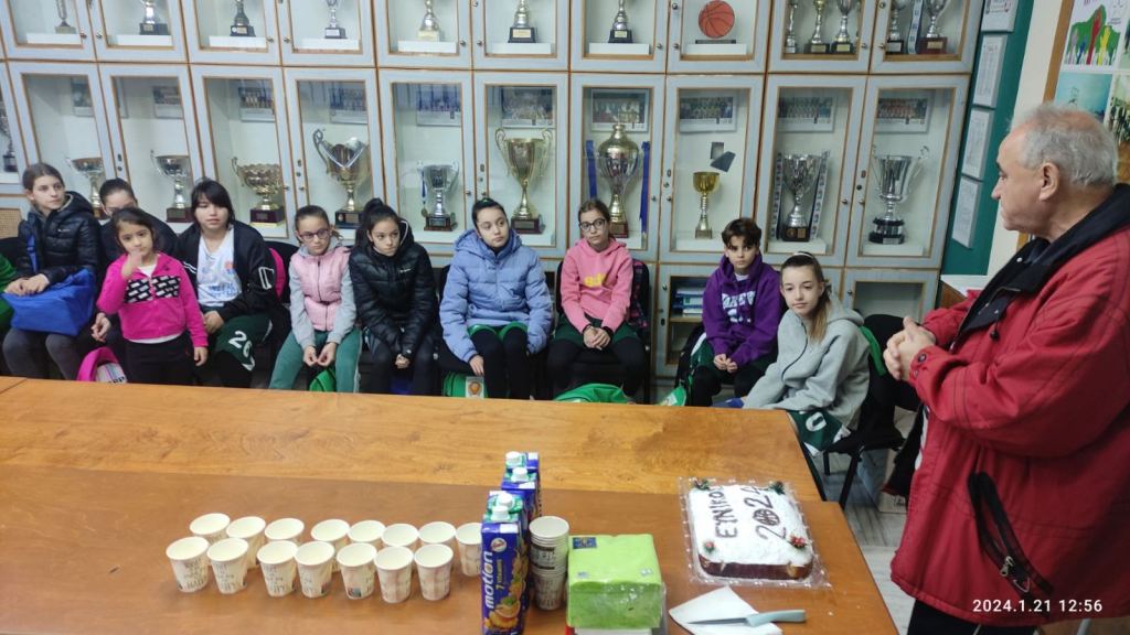 Ακολούθησε η ώρα του γλυκού και των χυμών, που κατέληξαν σ’ όλες τις παρευρισκόμενες αθλήτριες, ενώ η εκδήλωση ολοκληρώθηκε με ανταλλαγή ευχών για καλή πορεία σε κάθε τομέα της ζωής των παιδιών μας…