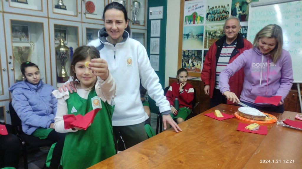 Η προπονήτρια των τμημάτων Εύη Μαχαιριώτου είχε φροντίσει κάθε λεπτομέρεια μαζί τα… τρία δεξιά της χέρια, τις κυρίες Χαρά Σαχαρίδου, Χριστιάνα Μαρτίνη και Μαρία Καραγλάνη που φρόντισαν για την παρασκευή των τριών πατροπαράδοτων βασιλοπιτών, οι οποίες μόνο από την εικόνα φαίνονται… μούρλια! Οι μαρτυρίες των αθλητριών μας είναι ακόμα εντυπωσιακότερες, μια και κάνουν λόγο για «τέλεια γεύση».