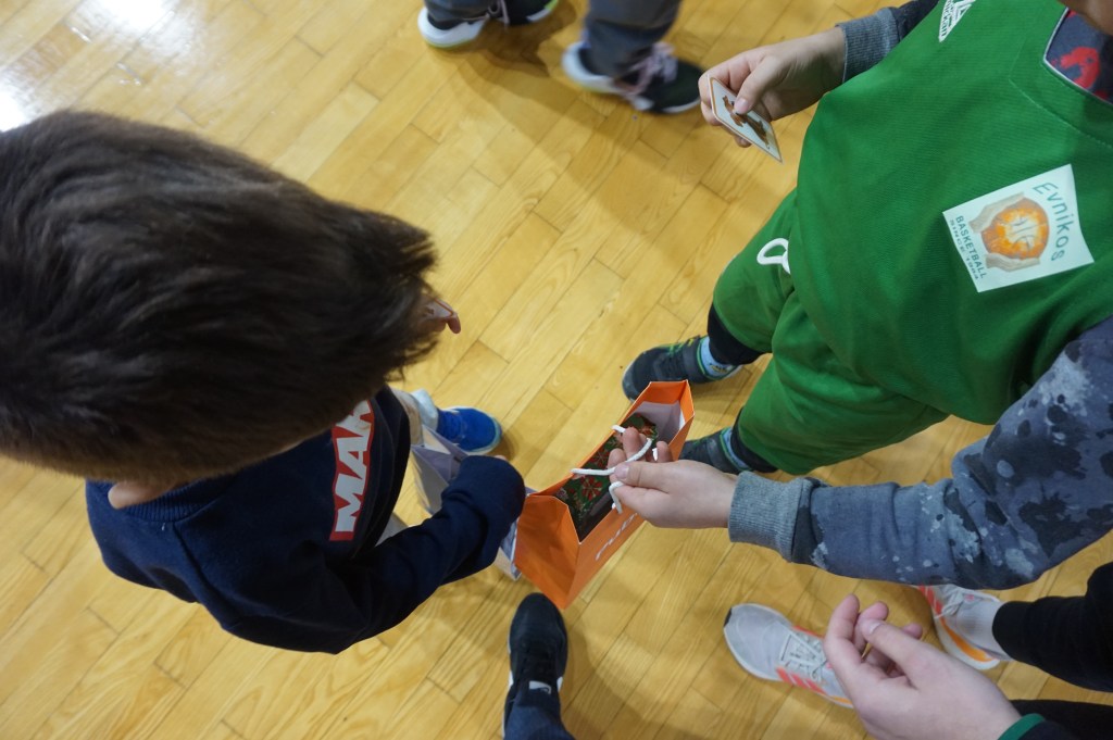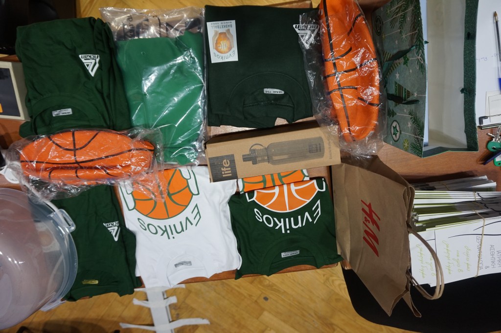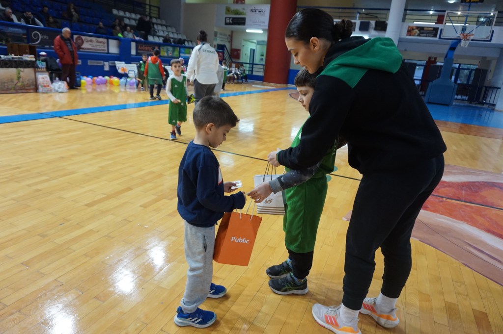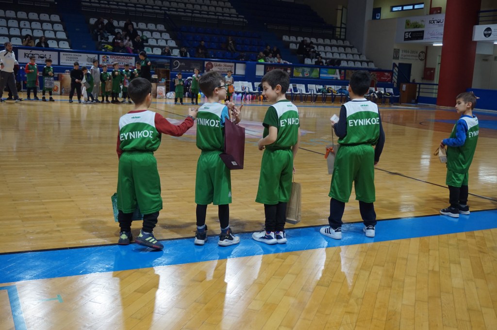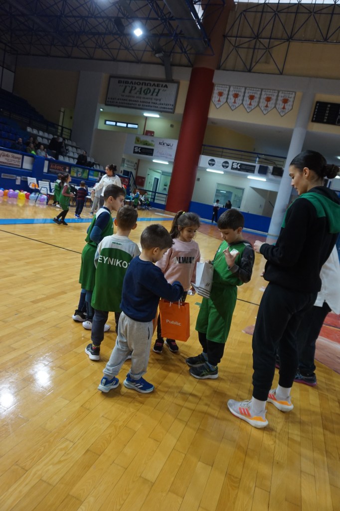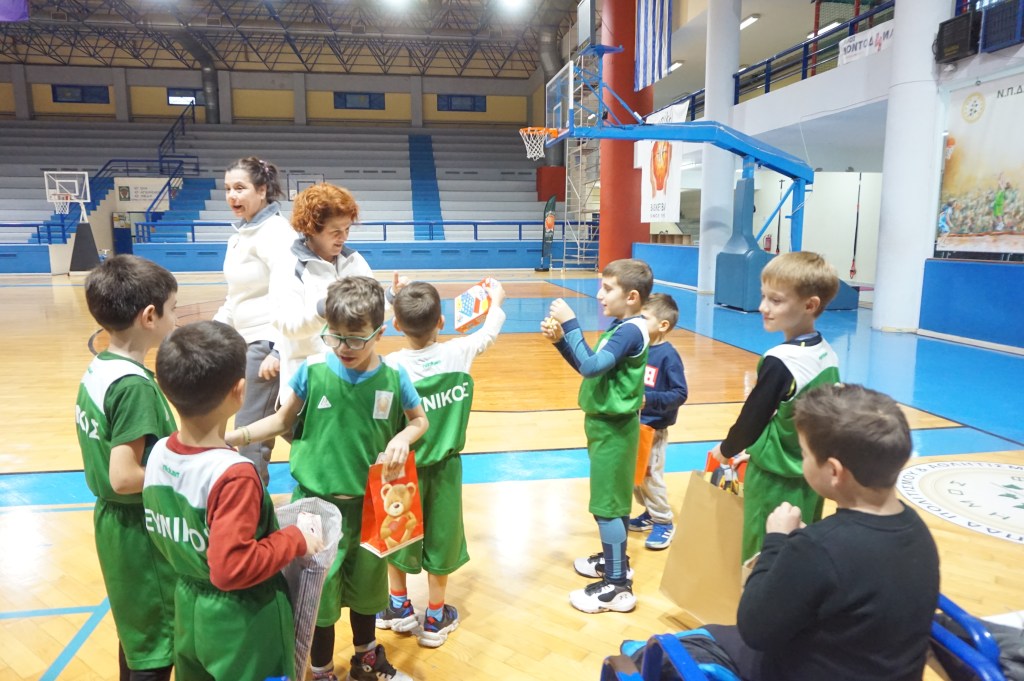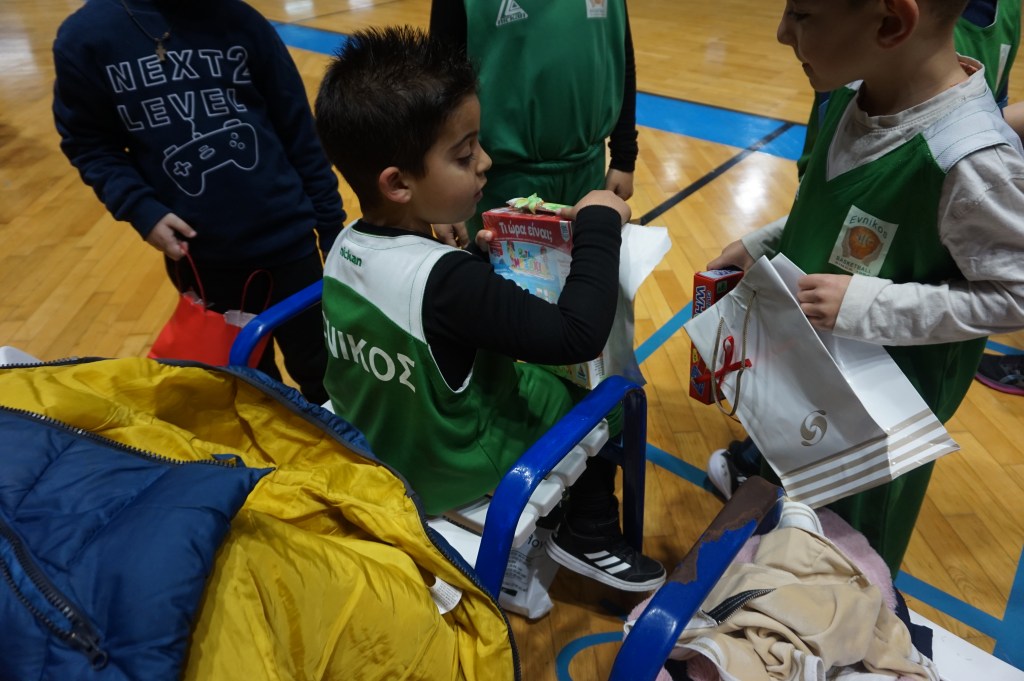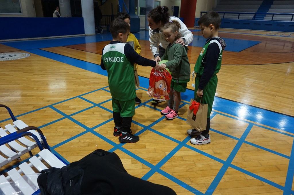 Το προπονητικό μας επιτελείο είχε φροντίσει να μην φύγει ουδείς στεναχωρημένος ή χωρίς ζωγραφισμένο το χαμόγελο στα χείλη από την εκδήλωση που έλαβε χώρα στο Στάδιο Εύνικος. Πως; Εκτός των 12 δώρων που κληρώθηκαν, σε συνεννόηση με τους γονείς και κηδεμόνες των αθλητών και των αθλητριών μας, προχώρησαν σε ανταλλαγή ενός συμβολικού δώρου κι έτσι όλα τα παιδιά-εκκολαπτόμενα αστέρια έφυγαν με το δωράκι στα χέρια τους. Και δεν ήταν μόνο αυτό. Η μαμά του Νίκου και του Γιώργου, με όλη της την καρδιά, όπως και όλοι όσοι συμμετείχαν και συνέβαλαν σ’ αυτή τη μοναδική γιορτή, είχε προετοιμάσει από ένα χειροποίητο δωράκι για κάθε παιδία μας. Η καλύτερη εικόνα όπως πολύ καλά μπορείτε να φανταστείτε ήταν η στιγμή που άνοιγαν τη συσκευασία για να δουν τι κρύβει μέσα… Ε. δεν σας το κρύβουμε έχουμε μια μικρή, τόσο δα, «αδυναμία» στο τμήμα Funbasket.