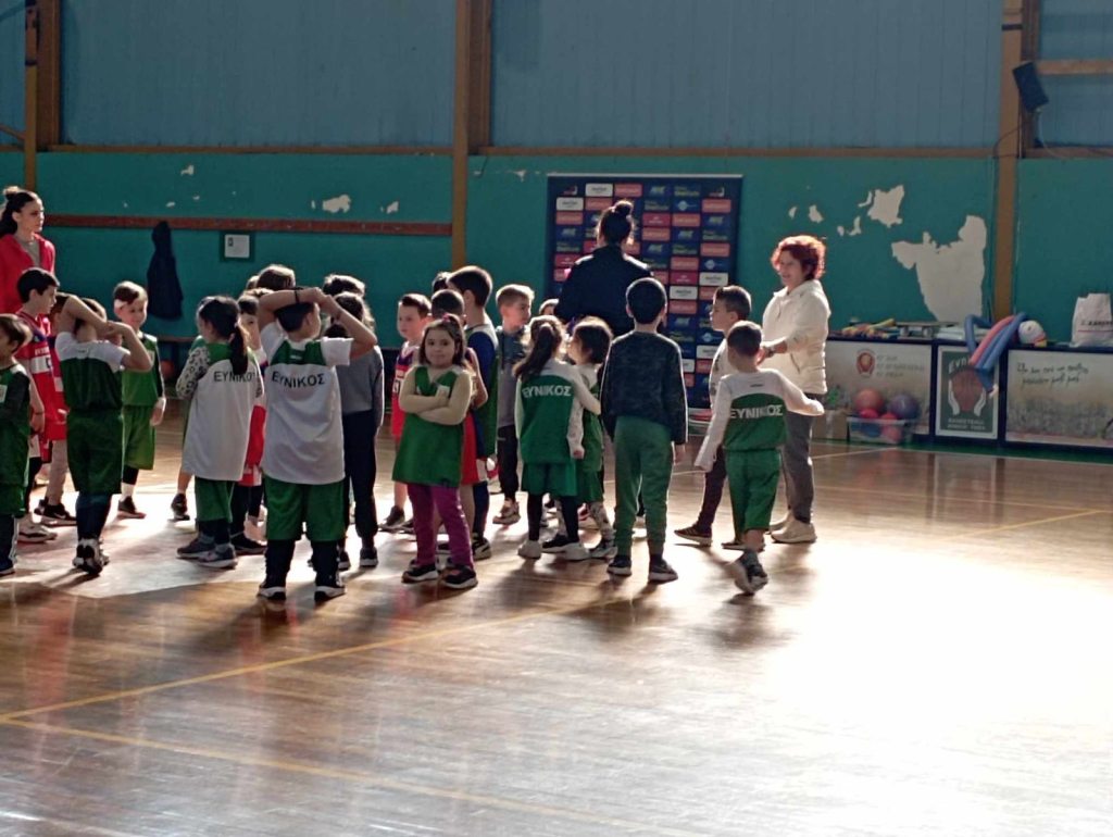 Διαγωνιστικά παιχνίδια με μπάλα και χωρίς, πρώτη επαφή με το 3on3, αριθμάκια και πολλές άλλες δράσεις, όλες με τον ανταγωνισμό να υπολείπεται, μιας και δημιουργούνταν μικτές ομάδες, υλοποιήθηκαν στην συνάντηση του Εύνικου με την Ολυμπιάδα Πετρούπολης. Στο τέλος του όλοι μαζί, μια ομάδα, μια οικογένεια, κεραστήκαμε κι ανταλλάξαμε χαμόγελα, αγκαλίτσες και high-five, δεσμευόμενοι ότι βλέποντας τα παιδιά μας ν’ απολαμβάνουν τον αθλητισμό και εν προκειμένω το μπάσκετ, θα φροντίζουμε να παραμένουν κοντά και να γνωρίζουν τις αξίες του.