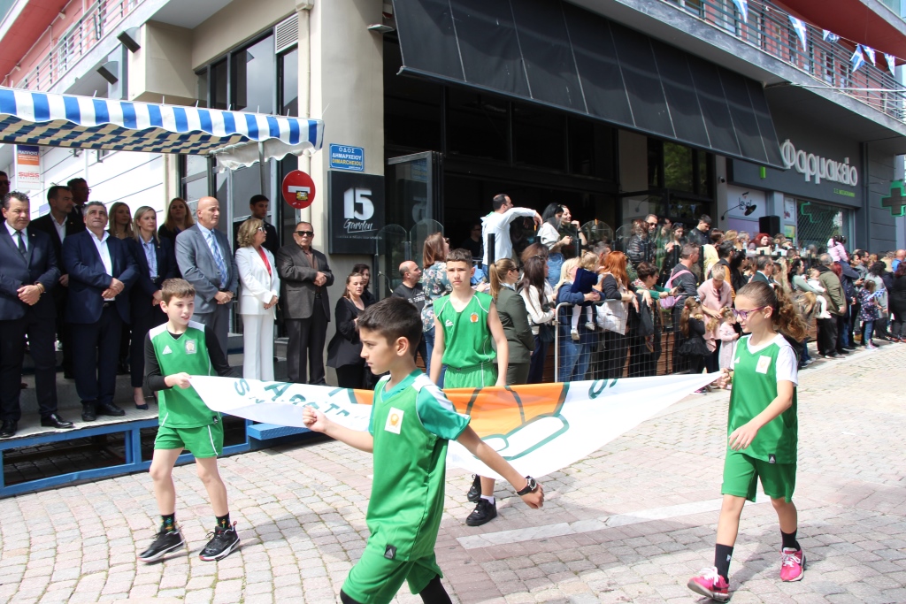 Λίγες ημέρες αργότερα, ανήμερα του εορτασμού της 203ης επετείου από την έναρξη της ελληνικής επανάστασης του 1821, αθλητές και αθλήτριες του συλλόγου μας τίμησαν τους ήρωες που πολέμησαν για την ελευθερία συμμετέχοντας στην καθιερωμένη παρέλαση. Η συμμετοχή των παιδιών μας ήταν πολύ μεγάλη, ενώ και την ώρα που παρέλασαν μπροστά από τους επισήμους και πλήθος κόσμου επέδειξαν τον απαιτούμενο σεβασμό, κάνοντας κι όλους εμάς υπερήφανους!