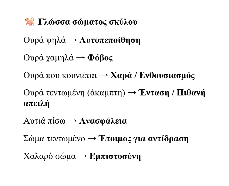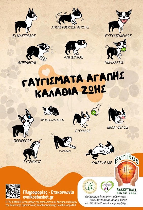 Η αφίσα μιλούσε για τη γλώσσα του σώματος του σκύλου. Για ουρές που δείχνουν συναισθήματα, για βλέμματα που ζητούν χώρο, για σημάδια που αξίζει να μάθουμε να αναγνωρίζουμε.
