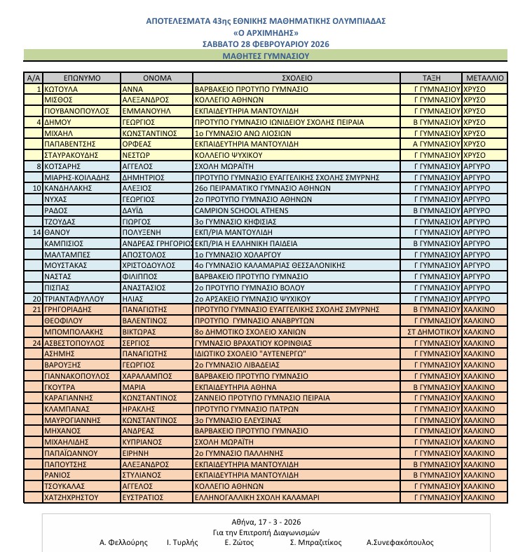 Ο Εύνικος εκφράζει τα θερμά του συγχαρητήρια στον αθλητή της παιδικής ομάδας καλαθοσφαίρισης (U16), Κωνσταντίνο Μιχαήλ, για τη σημαντική του διάκριση με την κατάκτηση χρυσού μεταλλίου στην 43η Εθνική Μαθηματική Ολυμπιάδα «Ο Αρχιμήδης» ως μαθητής του 1ου Γυμνασίου Άνω Λιοσίων.