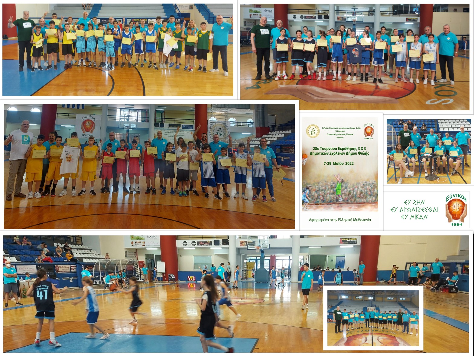 Τεράστια επιτυχία σημείωσε και η φετινή συνδιοργάνωση του Εύνικος Γ.Α.Σ. και του Νομικού Προσώπου Δήμου Φυλής «Η Πάρνηθα»! Για τέσσερα διαδοχικά Σαββατοκύριακα δεκάδες παιδιά, απ’ όλα τα δημοτικά σχολεία, μυήθηκαν στα μυστικά του 3Χ3 και διασκέδασαν παίζοντας μπάσκετ! Το εφετινό τουρνουά Δημοτικών Σχολείων, μία διοργάνωση που αποτελεί θεσμό για τα αθλητικά και μαθητικά δρώμενα τηςΣυνέχεια ανάγνωσης «Μύρισε… μπάσκετ όλο τον Μάιο στο 28ο Τουρνουά Εκμάθησης 3Χ3 Δημοτικών Σχολείων Δήμου Φυλής»