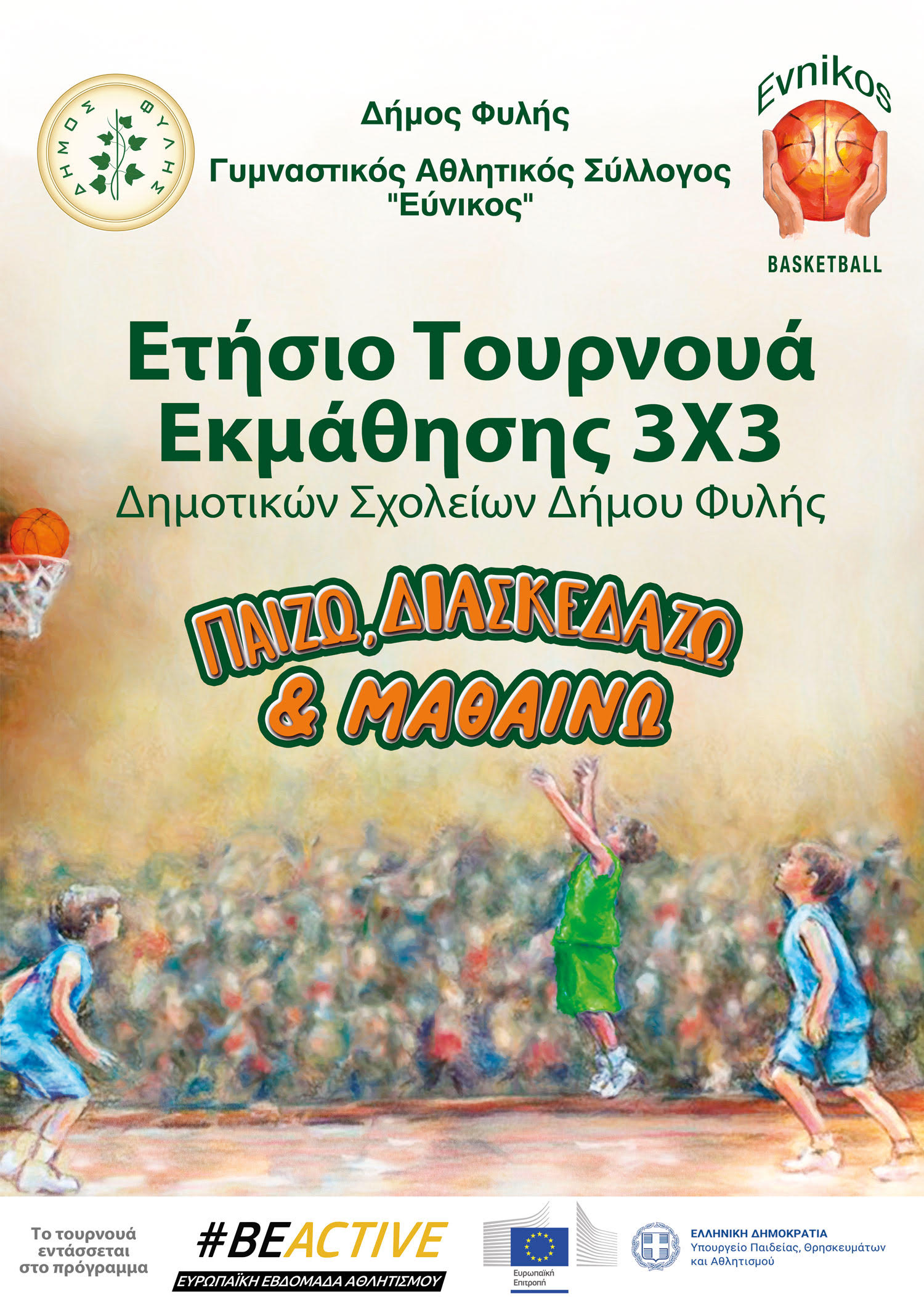 Προσκεκλημένοι όλες και όλοι στην πρεμιέρα 13/04 (9:00 π.μ. έως 2 μ.μ.) του Τουρνουά 3Χ3 Δημοτικών Σχολείων-Ελάτε να φωτογραφηθούμε για το #BeActive