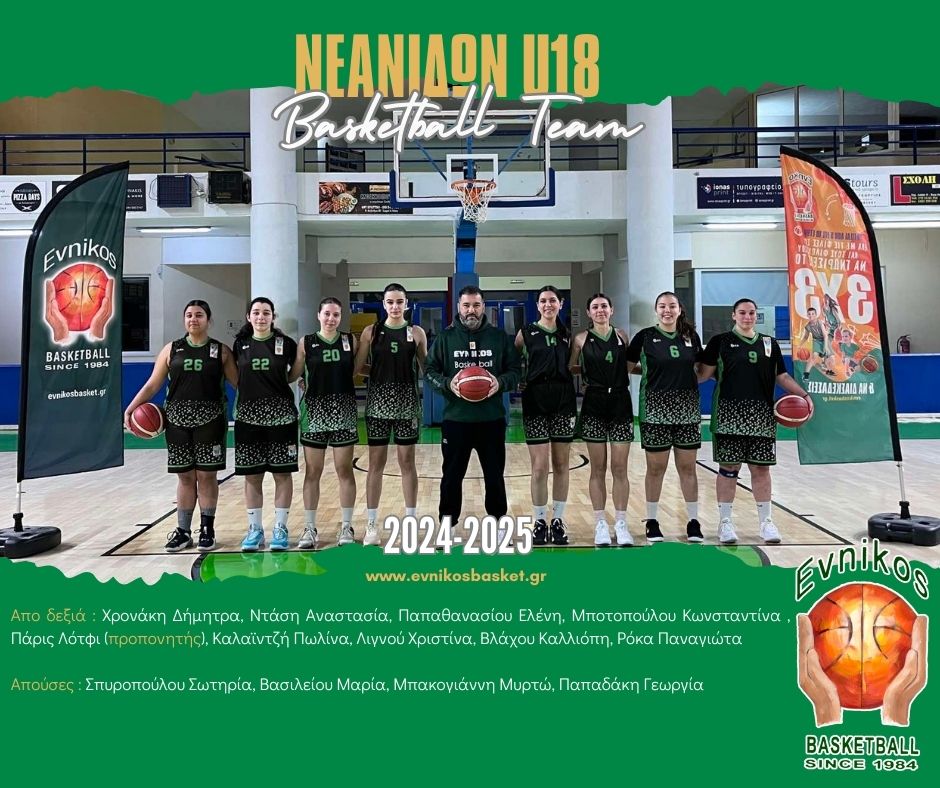 Εύνικος ΓΑΣ 2024-2025 Αγωνιστική Ομάδα Νεανίδων U18 Χρονάκη Δήμητρα, Ντάση Αναστασία, Παπαθανασίου Ελένη, Μποτοπούλου Κωνσταντίνα, Πάρις Λότφι (προπονητής), Καλαϊντζή Χριστίνα, Λιγνού Χριστίνα, Βλάχου Καλλιόπη, Ρόκα Παναγιώτα Απούσες: Σπυροπούλου Σωτηρία, Βασιλείου Μαρία, Μπακογιάννη Μυρτώ, Παπαδάκη Γεωργία