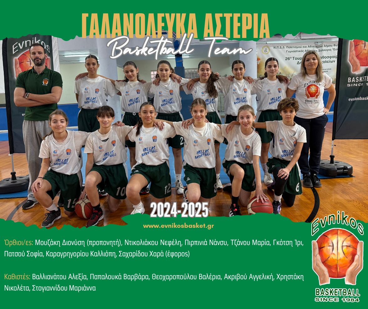 Εύνικος Γ.Α.Σ. Γαλανόλευκα Αστέρια 2024-2025 Όρθιοι/ες: Μουζάκης Διονύσης (προπονητής), Ντικολιάκου Νεφέλη, Πιρπινιά Νάνσυ, Τζάνου Μαρία, Γκότση Ίρις, Πατσού Σοφία, Καραγρηγορίου Καλλιόπη, Σαχαρίδου Χαρά (έφορος) Καθιστές: Βαλλιανάτου Αλεξία, Παπαλουκά Βαρβάρα, Θεοχαροπούλου Βαλέρια, Ακριβού Αγγελική, Χρηστάκη Νικολέτα, Στογιαννίδου Μαριάννα