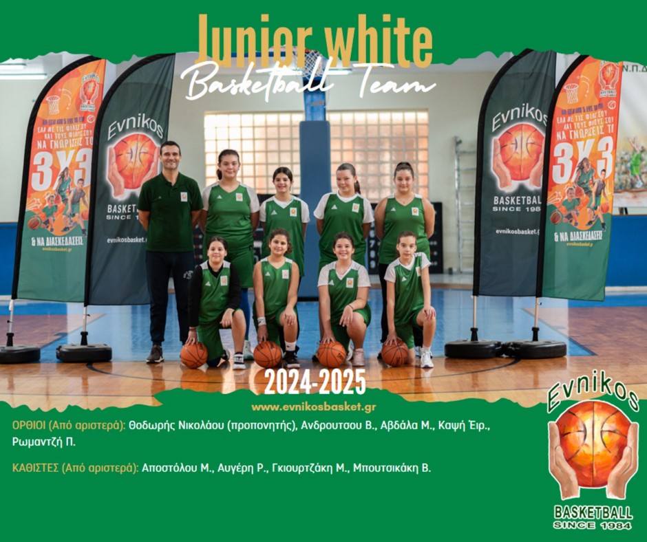 2024-2025 ΕΥΝΙΚΟΣ ΓΑΣ Ομάδα Κοριτσιών Junior White Όρθιοι: Θοδωρής Νικολάου (προπονητής), Ανδρουτσου Β., Αβδάλα Μ., Καψή Έιρ., Ρωμαντζή Π. Καθιστές: Αποστόλου Μ., Αυγέρη Ρ., Γκιουρτζάκη Μ., Μπουτσικάκη Β.