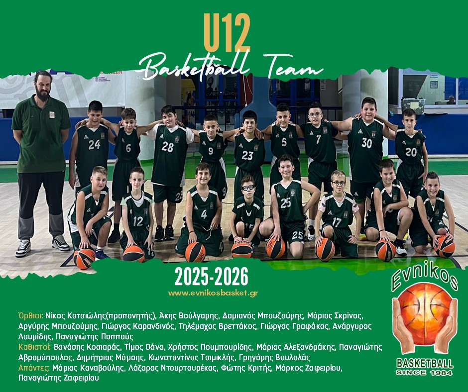 ¨Εύνικος¨ Γ.Α.Σ. 2025-2026 (Αγωνιστική Ομάδα U12 Αγοριών) Όρθιοι: Νίκος Κατσιώλης (προπονητής), Άκης Βούλγαρης, Δαμιανός Μπουζούμης, Μάριος Σκρίνος, Αργύρης Μπουζούμης, Γιώργος Καρανδινός, Τηλέμαχος Βρεττάκος, Γιώργος Γραφάκος, Ανάργυρος Λουμίδης, Παναγιώτης Παππούς Καθιστοί: Θανάσης Κοσιαράς, Τίμος Οάνα, Χρήστος Πουμπουρίδης, Μάριος Αλεξανδράκης, Παναγιώτης Αβραμόπουλος, Δημήτριος Μάμαης, Κωνσταντίνος Τσιμικλής, Γρηγόρης Βουλαλάς Απόντες: Μάριος Καναβούλης, Λάζαρος Ντουρτουρέκας, ΦώτηςΣυνέχεια ανάγνωσης