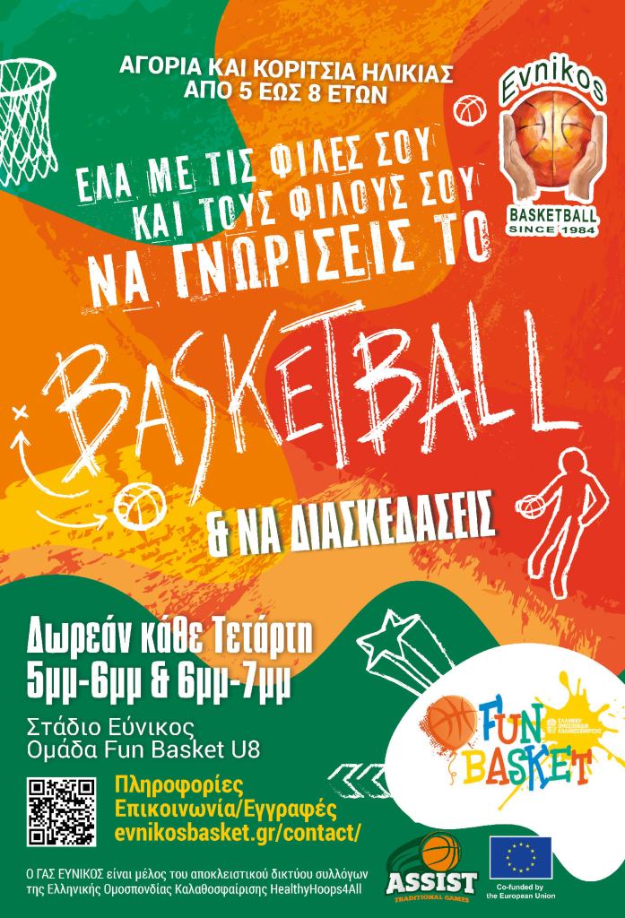 Ετήσια εγγραφή από 4 έως 65 ετών καλαθοσφαιριστριών και καλαθοσφαιριστών στα τμήματα του ΓΑΣ Εύνικος, μέλος του αποκλειστικού δικτύου της Ε.Ο.Κ.